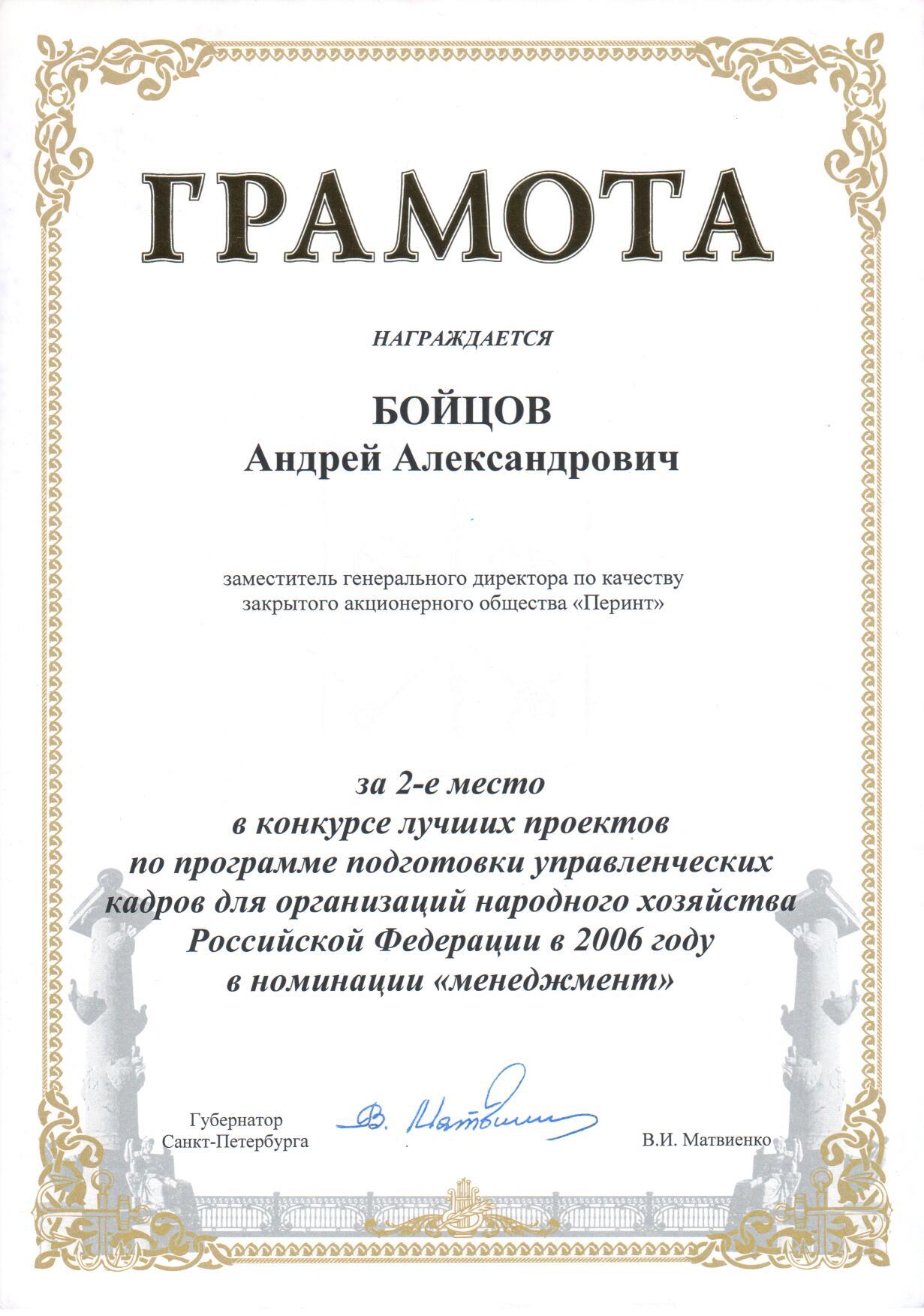 Грамота от Губернатора Санкт-Петербурга>>> 15