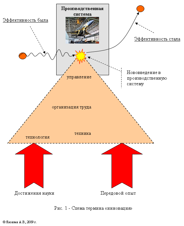 «Инновация - нововведение в области техники, технологии, организации труда или управления, основанное на использовании достижений науки и передового опыта, обеспечивающее качественное повышение эффективности производственной системы или качества продукции. Инновация - это не всякое новшество или нововведение, а только такое, которое серьезно повышает эффективность действующей системы».
